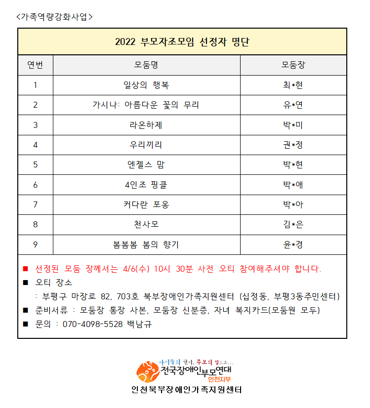 ºÎ¸ðÀÚÁ¶¸ðÀÓ ¼±Á¤°á°ú ¾È³»