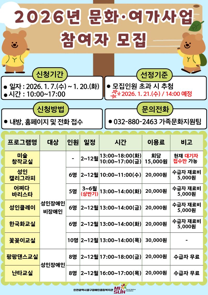 | (È«º¸) ÀÎõÁß±¸Àå¾ÖÀÎÁ¾ÇÕº¹Áö°ü 26³â Æò»ý±³À°, ¾çÀ°Áö¿ø ÇÁ·Î±×·¥ ¾È³» | |||