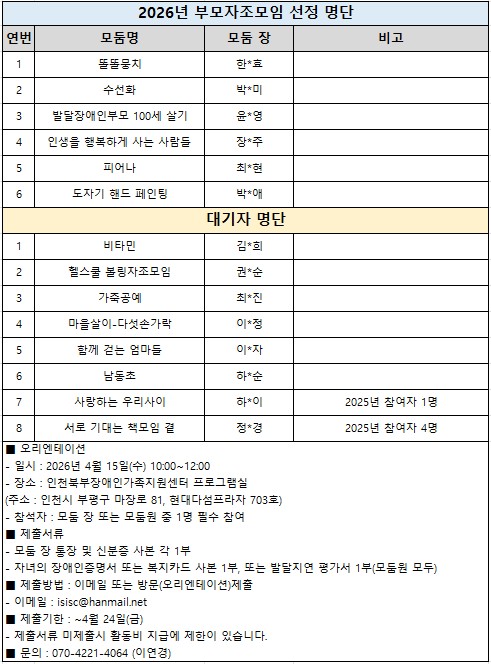 | 2026 ºÎ¸ðÀÚÁ¶¸ðÀÓ ¼±Á¤ ¾È³» | |||