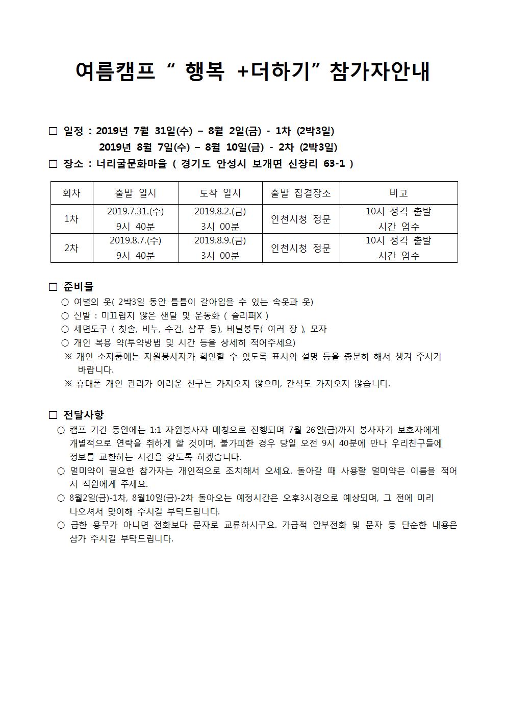 | 2019¿©¸§Ä·ÇÁ ÀÌ¿ëÀÚ ¾È³»¹® | |||